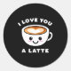 Adesivo Redondo I Love You A Latte Funny Cute Coffee Heart Valenti