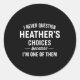 Adesivo Redondo I Never Question Heather's Choices Because I'm One