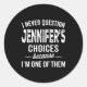 Adesivo Redondo I Never Question Jennifer’s Choices - Jennifer D