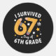 Adesivo Redondo I Survived 67th Day Of 6th Grade 67 Days Of School