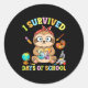 Adesivo Redondo I Survived Six Seven Days Of School Cute Sloth Stu