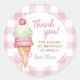 Ice Cream Pink Bow Gingham Birthday Party Classic Round Sticker