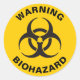 Ícone de aviso de risco biológico em fundo amarelo. Dois campos de texto personalizados em círculo.