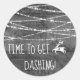 Nosso Time to Get Dashing Christmas envelope seletor design apresenta um ícone de rena desenhado à mão e uma tipografia em estilo giz branco em um fundo de madeira rústica de cinza monocromática e luzes de cordas cintilantes. É o toque final perfeito para as suas mensagens e pacotes de férias!