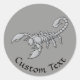 Desenho de escorpião. Ícone vetorial com cores personalizáveis. Cor de fundo personalizada. Texto personalizado.