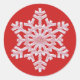 Adesivo Redondo Icy White Snowflake sobre o Natal Vermelho Quente
