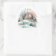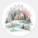 Vinhetas de Natal com uma bela igreja de aquarelas, campos de neve e faíscas.
