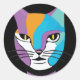 Adesivo Redondo Ilustração Colorida de Mulher Gato