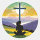 Adesivo Redondo Ilustração de arte de uma mulher sentada rezando