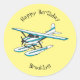 Adesivo Redondo Ilustração de hidroavião azul branco