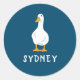 Adesivo Redondo Ilustração de Pato Branco Personalizada Azul Marin