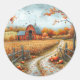 Adesivo Redondo Ilustração do outono da Rustic Red Barn