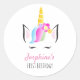 Adesivo Redondo Ilustração do rosto Unicórnio da Primeira festa de