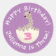 Está na hora da festa! Este adorável pintinho feliz de avestruz vai adicionar alguma diversão a qualquer festa. Desenhado no estilo de ilustração de desenho animado em um fundo de bolinhas roxo e rosa claro.