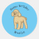 Adesivo Redondo Imagem de desenho animado de poodle marrom feliz