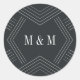 Os adesivos de monograma de casamento, dramáticos e elegantes, são uma forma perfeita de selar os envelopes de convite. Design apresenta as suas iniciais em letras brancas contra um fundo azul-preto de carvão com detalhes geométricos modernos para uma aparência atualizada em deco. Projetado para combinar com nossa coleção de casamento do Império em Carvões.