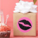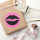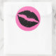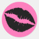 Adesivo Redondo Impressão de Batom Preto e Rosa Quente
