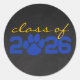 Adesivos Circulares de Graduação Impressão de Pata Amarela Azul e Dourado em Quadro de Giz. Perfeito para selar envelopes ou como adesivo de favor!