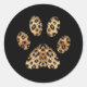 Adesivo Redondo Impressão de Pata com Brilho de Leopardo Dourado e
