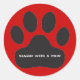 Adesivo Redondo Impressão de Pata Negra em Fundo Vermelho