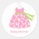 Um vestido adorável com uma impressão de girafa rosa. Tão doce por chá de fraldas de adesivos.