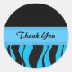 Adesivo Redondo Impressão de Zebra Negra e Azul Obrigado