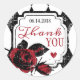 Rosa vermelha e fundo de impressão de diamante com obrigado e etiqueta design para um casamento gótico.