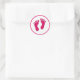 Adesivo Redondo Impressões de Pé de Bebê Rosa