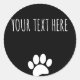 Adesivo Redondo Imprimir Texto Personalizado em Pata de Cão Preto