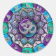 Mandala brilhante com yin-yang, sinais de paz, átomos e símbolos astrológicos e sinais de zodíaco. Os mandalas são uma tradição artística nas culturas indígenas e celtas. Eles são usados em meditação para focar a mente. A mandala da Independência da UROCK é cheio de símbolos favoritos como o símbolo OM ou Aum e brilhantes tons de azul roxo e verde. #mandala #om