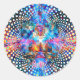 Uma imagem do Buda em uma representação de um universo interconectado. Cores psicodélicas.