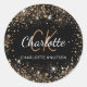 Adesivo Redondo Iniciais de monograma nome em pó brilhante dourado