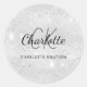 Adesivo Redondo iniciais de nome com monograma de brilho prateado