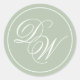 Em um fundo verde sábio, dentro a branco, há um monograma elegante de duas iniciais brancas escritas em um roteiro caligráfico elegante (as padrão são D e W). Pode ser usado para "selar" um convite de casamento, com as iniciais da noiva e do noivo, mas também para o correio normal, com as iniciais do primeiro e do sobrenome.