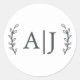 O elegante, moderno e simples monograma retorna o clássico adesivo redondo com suas iniciais monográficas em tipografia elegante de na moda fora de preto em um fundo branco com um toque na moda de folhagem rústica. Basta adicionar suas iniciais. Desenvolvido exclusivamente para você pelo Happy Dolphin Studio. Se precisar de ajuda ou produtos correspondentes, entre em contato conosco em happydolphinstudio@outlook.com. Estamos felizes em ajudá-lo a fazer seu casamento o dia mais bonito!