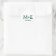 Coloque os envelopes de casamento e trate as bolsas com este adesivo branco e verde minimalista que apresenta as iniciais do seu noivo e do seu noivo e a data do seu casamento em uma fonte elegante.
