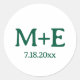 Adesivo Redondo Iniciais e data verdes do Casal de casamento