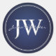 Eleve os detalhes do seu evento com este adesivo redondo elegante azul marinho e prata, apresentando iniciais personalizadas em um design de monograma atemporal. Ideal para selos de envelope, lembranças de festa, sacolas de presente ou decoração de evento, este adesivo clássico adiciona um toque refinado a casamentos, aniversários marcantes, formaturas e muito mais. Totalmente personalizável para sua ocasião especial.
