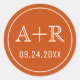 Iniciais simples e elegantes queimadas, laranja e envelope branco, selado ao redor do stickert. Ele exibe suas iniciais em uma fonte de script em laranja. Faz parte da nossa suíte de casamento "Flores Laranja". Você pode alterar a cor de fundo para atender às suas necessidades.