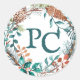 Adesivo Redondo Iniciais Verdes Eucalyptus Pinecone Wreath