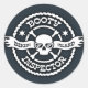 Engraçado agente alfandegário pirata emblem: "Inspetor de Booty da Ilha Bikini." Crânio e ossos cruzados em óculos de sol, com bandeiras rasas e bordas de cordas. Imagens limpas, em estilo estêncil, em t-shirts, cartas, presentes.