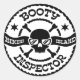 Engraçado agente alfandegário pirata emblem: "Inspetor de Booty da Ilha Bikini." Crânio e ossos cruzados em óculos de sol, com bandeiras rasas e bordas de cordas. Imagens limpas, em estilo estêncil, em t-shirts, cartas, presentes.