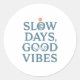 Embrace a more mindful and relaxed way of life with this "Slow Days, Good Vibes" graphic. The clean, minimalist typography with a retro flair serves as a gentle reminder to slow down, breathe, and appreciate the simple moments that bring joy. It's the perfect, calming message for anyone seeking to cultivate a life of peace and positivity.