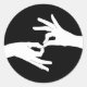 Duas mãos brancas fazer o sinal ASL para "interpretar". As mãos são mostradas contra um fundo preto.