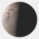 Io é a lua vulcânica amarela de Júpiter. O amarelo é enxofre, e os fragmentos negros e laranja são vulcões.