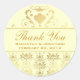 Adesivo Redondo Ivory e Casamento tema damasco Dourado Obrigado