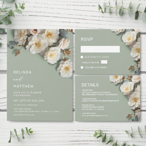 Ivory white 3D roses.
