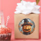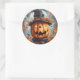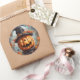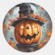 Festivo Jack O Lanterna vestindo uma bruxa que colorido folhas de outono por toda a parte.