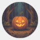 Adesivo Redondo Jack O' Lanterna Brilhando Na Floresta
