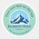 Stickers de Jackson Hole, Wyoming, EUA com uma montanha azul maravilhosa com um fundo ensolarado e a opção de adicionar texto.